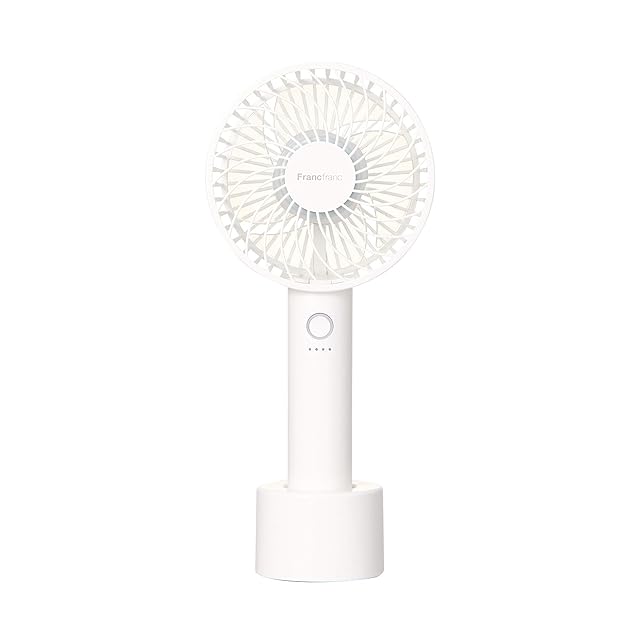 <b>夏の定番「フレハンディファン」</b><br>卓上でも携帯型でも使える2WAYタイプのUSB充電式ハンディファンが今年も登場!<br>パワフルな風量と静音性はもちろん、ファッションに合わせて選べる豊富なカラーバリエーションをラインナップして、今年もFrancfrancが「持ち歩ける涼しさ」をお届けします。<br><br><b>Francfrancならではの選べるデザイン</b><br>どんなシーンでも使いやすいベーシックなラインから、トレンドをFrancfrancらしく取り入れた、思わず自慢したくなるようなデザインまで、豊富なバリエーションをご用意しました。<br>新色のシアーマーブルは、透明感のあるデザイン。ハンドルのなみなみ形状がトレンドライクなウェーブデザインに、見た目から楽しいバイカラーデザインも。<br>ファッションや使用シーンに合わせて複数持ちしたくなるラインナップです。<br><br><b>強力な5段階の風+リズム風</b><br>風量は弱~強モードの5段階+リズム風をボタンひとつで簡単に調節できます。手軽な携帯型ながらしっかりと涼しさを感じられるパワフルタイプ。強力な風で熱中症対策にも効果的です。<br><br><b>うれしい2電源対応</b><br>USB電源と充電池の2電源に対応。付属の専用充電スタンドやパソコンのUSBポートからも充電できます。また、2024年モデルよりUSB Type-Cを採用しています。<br>充電池使用の場合は約4時間で充電完了。風力「最大」で約2時間、「微弱」ならたっぷり9時間の連続運転が可能です。<br><br><b>「涼しい」を持ち運ぶ</b><br>便利なコードレスタイプだからいつでもどこでも使い方自由自在です。フェス、イベント、スポーツ観戦、通勤・通学時など様々なシーンで活躍します。<br>スイッチオンの動作を長押しに変更。バッグにそのまま入れても誤作動を防ぎ、安全に持ち運べます。持ち運びに便利なハンドストラップ付き。<br>付属の専用充電スタンドを使えば手がふさがっている時も安心。デスクや洗面所、キッチンなど、お好きな場所にさっと移動してスモールペースを涼やかに心地よくキープできます。<br>ストラップホールが3か所あるのでネックストラップ(別売り)をセットして首に掛けて持ち歩くことも可能です。<br><br><b>専用パーツで便利度アップ</b><br>お部屋に置いて使う時にはぜひ専用回転スタンド(別売り)をお試しください。回転スタンドにセットすると最大180度自動スウィング。同じ場所に風が当たり続けるのを防いでより一層快適に使えます。