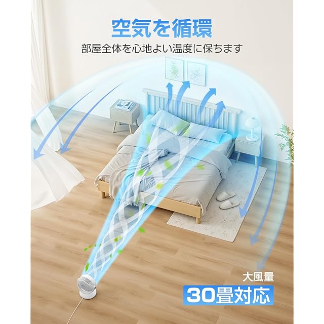 商品名:サーキュレーター DCモーター【2025 先行発売モデル&節電対策】扇風機 兼用 静音 超小型せんぷうき 強力送風 省エネ リモコン付き 左右首振り 上下角度調節 3モード 風量6段階調節 タイマー機能 一台多役 換気/空気循環/部屋干し/冷房 梅雨除湿 衣類乾燥 日本語取扱説明書付き プレゼントに最適