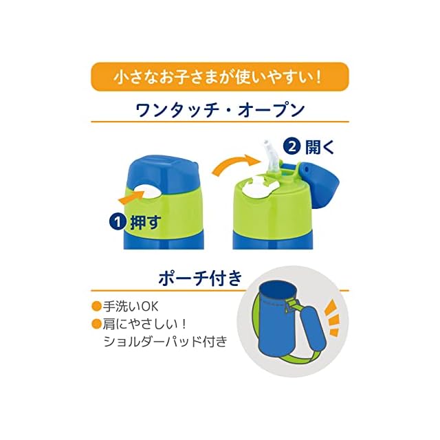 水分補給に便利、軽量コンパクトタイプのストローボトル。子供の肩に優しいショルダーパッド付きポーチ