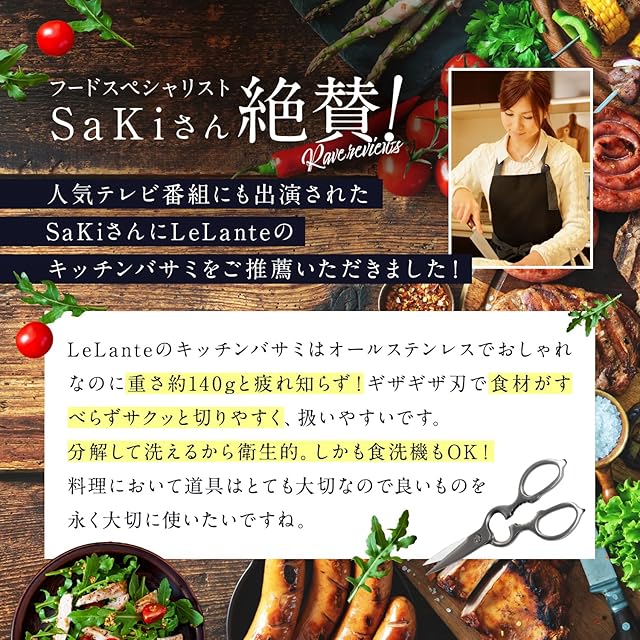 【フードスペシャリスト推薦】 LeLanteは金型から作成した独自のオリジナル キッチンバサミ です。 納得のいく質感に仕上がるまでステンレス一体成形の金型を何度も作り直し、長い年月をかけて完成しました。