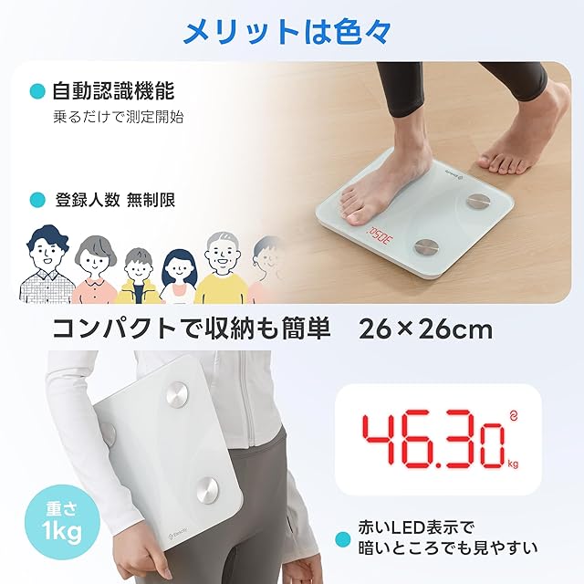 商品名:Etekcity 体重計 体組成計 スマホ連動 13項目測定可能 2年品質保障 体脂肪計 Fitbit連携 スマート 高精度 軽量 日本語対応APP・説明書 FIT8S (ホワイト)