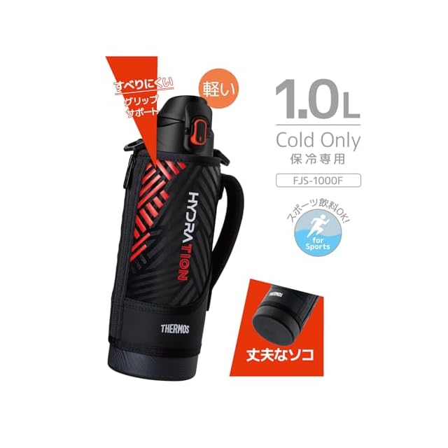 サーモス 水筒 真空断熱スポーツボトル 1L ブラックオレンジ 保冷専用 子供用 ポーチ付き 肩に優しいストラップ FJS-1000F BKOR