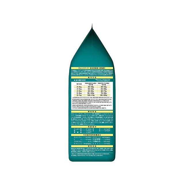 原材料:チキン、コーングルテン、チキンミール、小麦、食物繊維(ビートパルプ、ライスファイバー、可溶性繊維、セルロース)、米、小麦たんぱく、脱脂大豆、フィッシュミール(オメガ3脂肪酸源)、ソルガム、大麦、鶏脂(オメガ6脂肪酸源)、たんぱく加水分解物、酵母(βグルカン源)、ミネラル類(カルシウム、リン、カリウム、ナトリウム、クロライド、マグネシウム、鉄、銅、マンガン、亜鉛、ヨウ素、セレン)、カラメル色素、ビタミン類(A、D、E、K、B1、B2、パントテン酸、ナイアシン、B6、葉酸、ビオチン、B12、コリン、C)、アミノ酸類(メチオニン、タウリン)