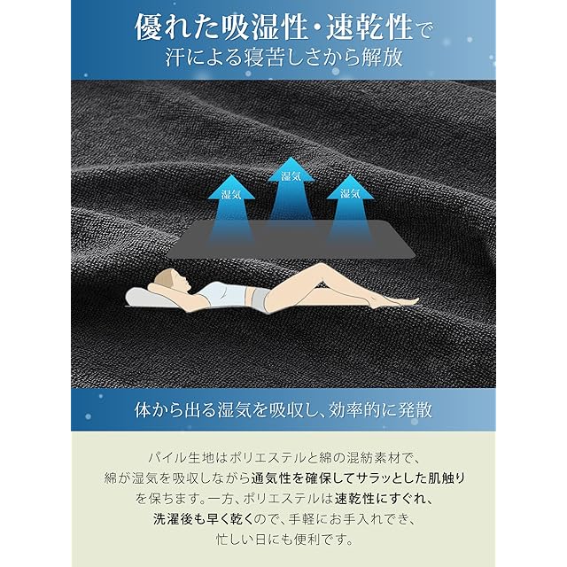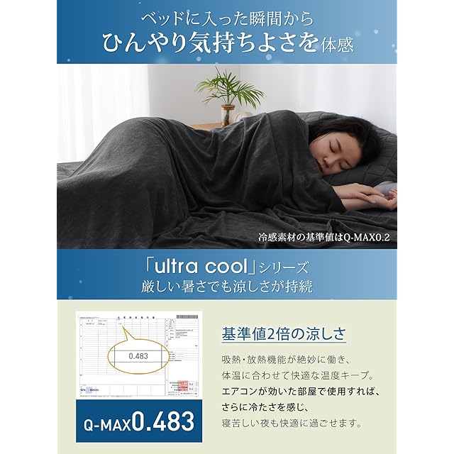【圧倒的な冷感】体温を素早く拡散する接触冷感生地を使用。触れるたびにヒヤッと気持ちよくて、火照った体を瞬間冷却!暑くて寝苦しい夜でも極冷えで快適に眠れます。