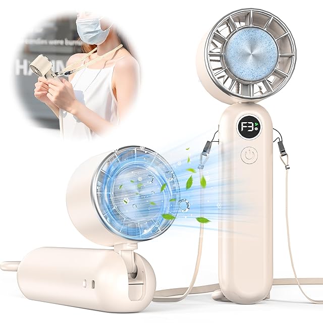 商品名:ハンディファン 冷却プレート付き 携帯扇風機 冷感 手持ち扇風機 ミニファン 長時間稼働 3段階風力調節 USB充電式 熱中症対策 小型 軽量 卓上 首掛け ストラップ付属 金属カラビナ付き ベージュ