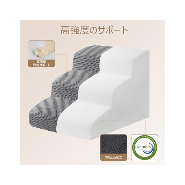 商品名:EHEYCIGA 犬 階段 ステップ ペット階段 ドッグステップ 犬 スロープ 高密度 滑り止め付き 安定性 カバー取り外し可能 洗える 小型犬適用 (3段,グレー)