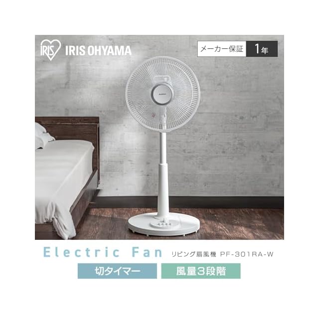 商品名:【節電対策】 アイリスオーヤマ 扇風機 首振り 風量3段階 タイマー機能付き 換気 リビング扇 ホワイト PF-301RA-W