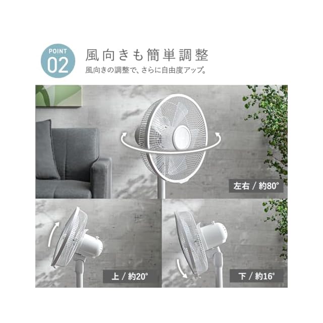 風量調節:3段階(弱/中/強)、高さ調節:約68~88cm、切タイマー:30/60/90/120/150/180min、首振り:○