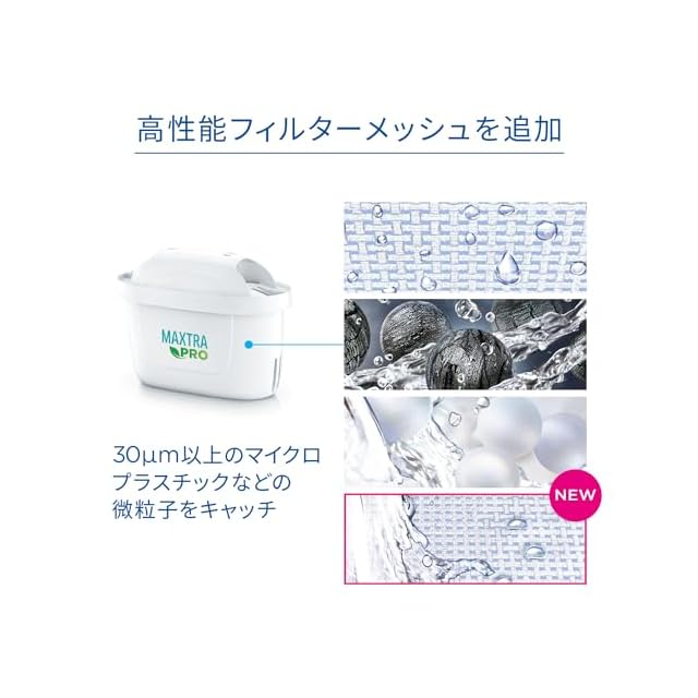 【高性能フィルターメッシュ】高性能フィルターメッシュの追加で微粒子のろ過能力が向上。粒子のサイズが≧30μmに減少*(*APMO R&T LAB.においてNSF/ANSI 42 Class V and VI に従ってテスト済)