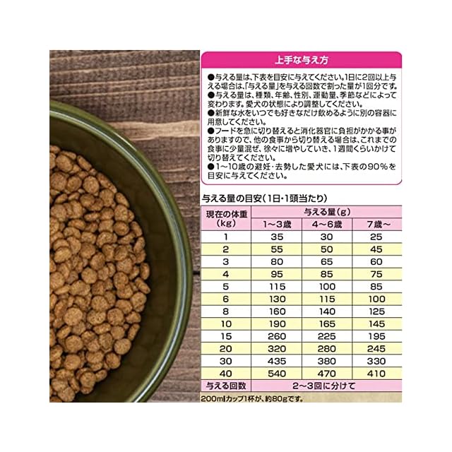 成分:たんぱく質31.5%以上 脂質15.5%以上 粗繊維8.0%以下 灰分8.5%以下 水分10.0%以下