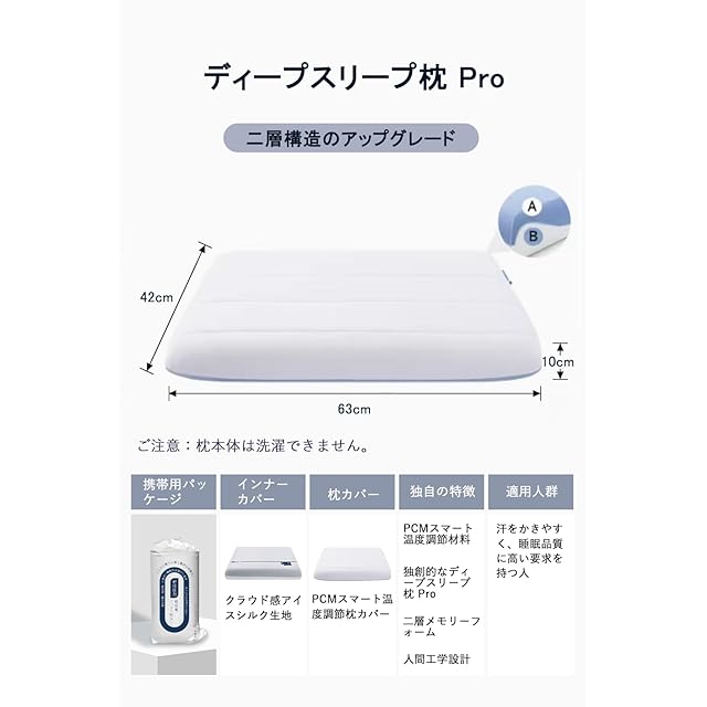 【理想的な寝心地を追求した2層構造】この枕は、2層構造により、柔軟さとサポート力を兼ね備え、個々の体型にぴったりフィットします。体圧を分散し、首や肩への負担を軽減。理想的な寝心地を実現します。