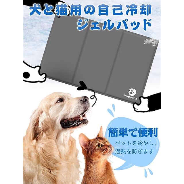 柔軟性&耐久性に優れる2重構造・防水仕様 いつも清潔に - 表面は強度を高めているポリエステル素材を採用して、中身は柔らかいジェル素材で作られたペット用ひんやりマットです。柔軟性と耐久性に優れています。やわかい質感とひんやり感に、ネコちゃんやワンちゃんも喜んで使ってくれるでしょう。また、表面に撥水加工を施しているので、汗や水によるねっぱりやびしょびじょを効果的におさえます。なお、ご利用する前に、猫ちゃんやワンちゃんの爪を切っていから利用していただくをお勧めします。