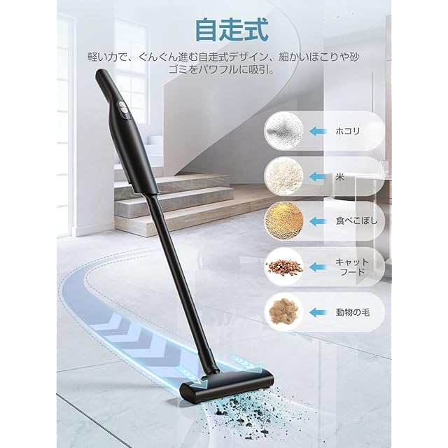 【軽量➕多目的ノズル付き】そうじきは超軽量、加えてヘッドに自走機能が搭載されていることもあり、軽い力でグングン進む自走式デザイン、細かいほこりや砂ゴミをパワフルに吸引。より軽い力で掃除可能。ライト付き、ほこりが見やすく、暗い場所のゴミも逃さない。ハンディ掃除機は片手で持ち運びができます。人間工学に基づくハンドルデザインと手元に置いた重心により、女性でも持ち上げやすく、エアコンや網戸など高い場所にも簡単に届きます。3種類のノズルが付属しており、布団やソファーなどのファブリックはもちろん、車内など、さまざまなシーンで使えます。細かい隙間にまでしっかり掃除することができ、心地よい掃除が実現します。