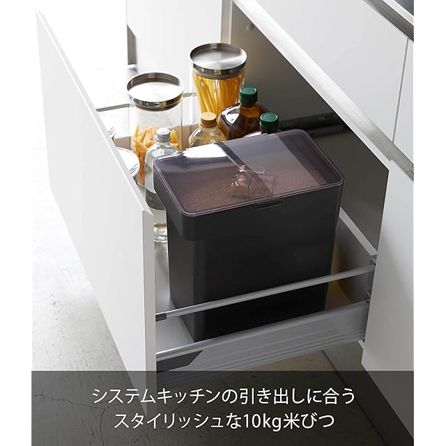 商品名:山崎実業(Yamazaki) 密閉 米びつ 10kg 計量カップ付 ブラック 約W30.7XD19.7XH31.2cm タワー 湿気 酸化防止 5424