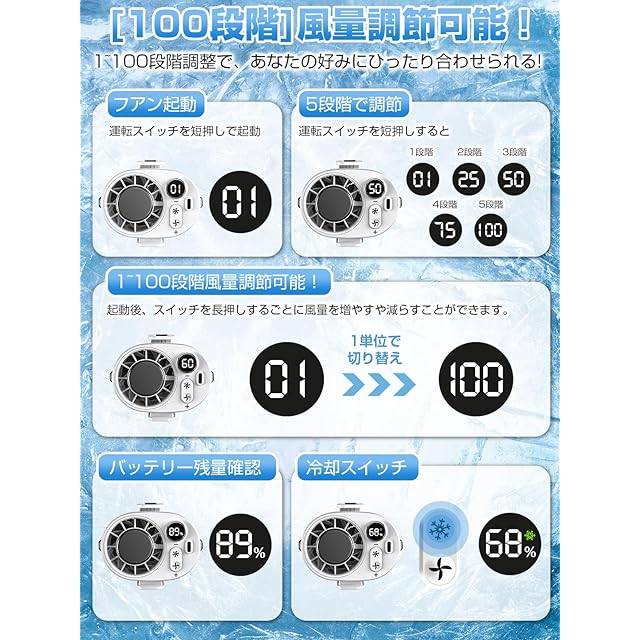 【2025新登場・冷却プレート付き】腰掛け 扇風機 ベルトファン 携帯扇風機 充電式 アウトドア 5000mAh電池内蔵 100段階風量調節 くびかけ 手持ち 腰掛け 扇風機 屋外作業 農業 街頭販売 野外活動 首掛け・腰掛け・手持ち 両面クリップ付
