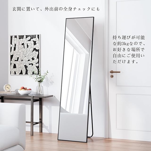 【簡単に移動・設置可能】全身鏡は軽量で持ち運びやすく、家具の配置が頻繁に変わる家庭に適しています。住所変更が必要な場合でも、簡単に持って行くことができます。