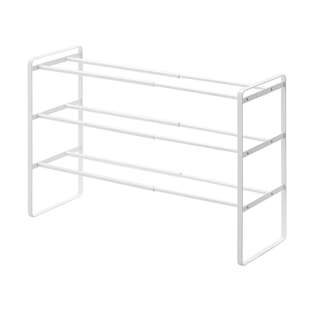 山崎実業(Yamazaki) 伸縮 シューズラック 3段 ホワイト 約W41~70×D25×H46cm フレーム Frame 玄関 靴 収納 7555