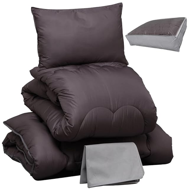 アイリスプラザ 丸ごと洗える布団4点セット シングル 中空ポリエステル綿採用 すっきり収納ケース付き しっとりなめらかピーチスキン加工 (掛け布団 敷布団 枕) ブラック