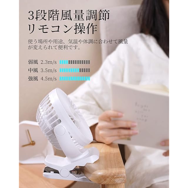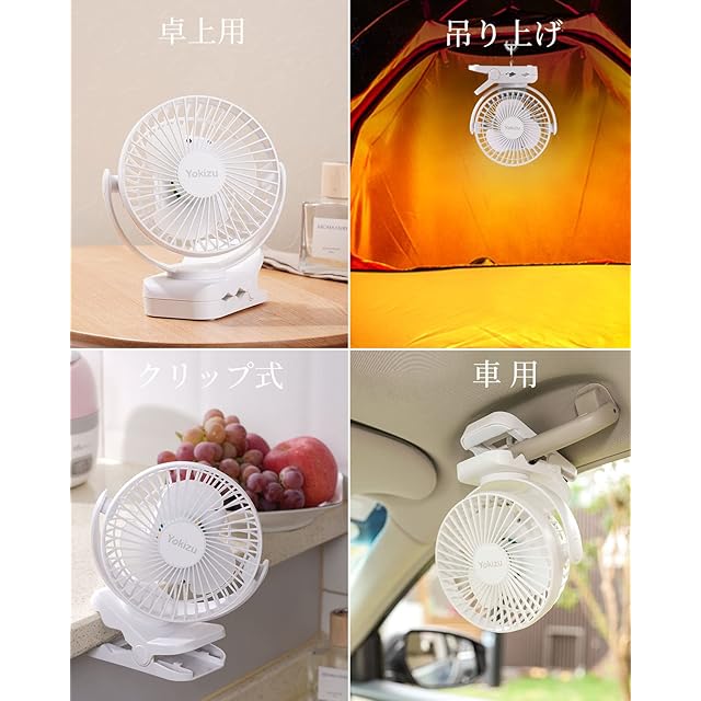 商品名:Yokizu 卓上扇風機 クリップ 小型 静音 リモコン付き usb充電式 8000mAh大容量 急速充電 60h連続使用 LEDライト モバイルバッテリー 風量3段階 ファン キャンプ リビング 会社 持ち運び 車用 ポータブル 超強風 熱中症対策 ホワイト