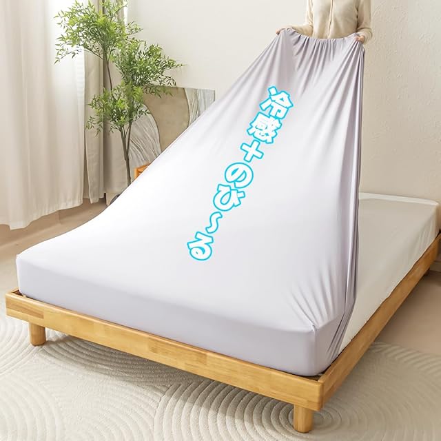 商品名:ボックスシーツ 夏用 シングル ひんやり 伸びる 冷感シーツ 極細クール生地 吸湿通気 QMax0.4以上 すべすべ 柔らかい 丈夫な生地 伸縮性 抗菌防臭 全週ゴムバンド付 ベッドシーツ フィットシーツ マットレスカバー のびのび 速乾 グレー 100×200cm