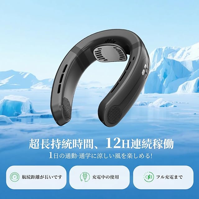 商品名:【2025年夏新型&冷却プレート】heine ネッククーラー 首掛け扇風機 ネッククーラー 冷却プレート ネックファン 風量無段階調節 半導体 瞬間冷 LEDディスプレイ表示 Type-C充電 4400mAh大容量バッテリー 長時間連続使用 おしゃれ スポーツ観戦/遠足/アウトドア/山登り/工事現場/通勤通学/釣り/父の日 母の日 誕生日 ブラック
