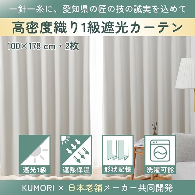 【注意事項】KUMORIのカーテンは日本国内で企画し、海外の工場で日本基準の品質管理を徹底していますので、より安心してご購入いただけます。 ※商品の色合いは、モニター環境により実物とは多少異なる場合があります。 ※万が一商品に不具合がある場合、商品到着後の90日以内にご連絡いただければ返品・交換を承ります。何かご不明な点があれば、遠慮なく当店([email protected])までお問い合わせください。