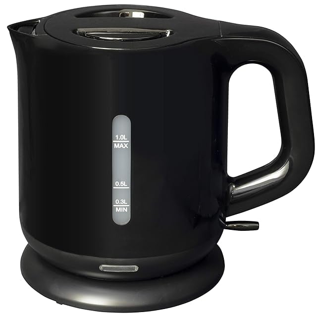 [山善] 電気ケトル 電気ポット 1.0L 一人暮らし 二人暮らし コンパクト 沸騰自動OFF機能付き ワンタッチ操作 ブラック DKE-100(B)