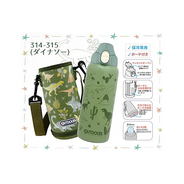 東亜金属(Toa) OUTDOOR PRODUCTS( アウトドアプロダクツ ) 子供用 ステンレス ワンプッシュ ボトル 700ml 【 ダイナソー 】 保冷専用 314-315