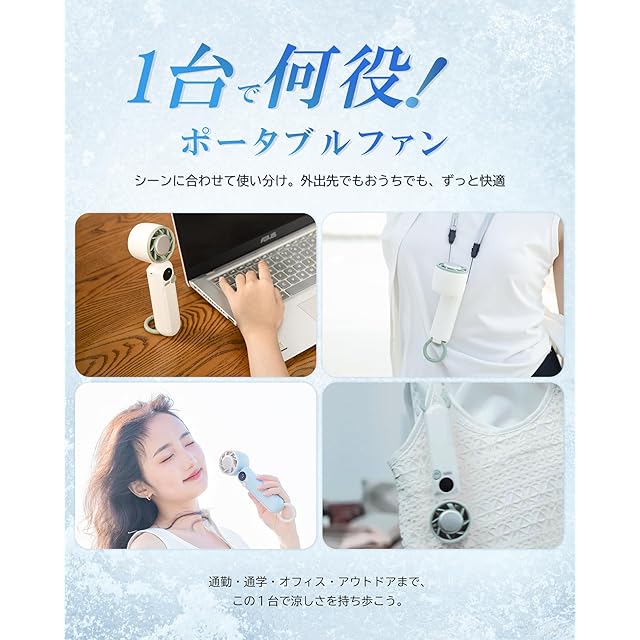 商品名:ハンディファン 冷却プレート ペルチェ素子 携帯扇風機 1〜100段階無段階風量調整 大容量 静音・強力 ハンディ扇風機 最大12時間使用可能 手持ち扇風機 首掛け・卓上両用 小型 ミニファン 2025 オフィス・通勤・通学・旅行・アウトドアに最適 熱中症対策