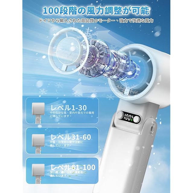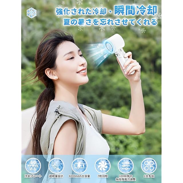 商品名:【2025新登場 -20℃瞬間冷却】 携帯扇風機 ハンディファン 冷感プレート付き 1~100無段階風量調節 ハンディ扇風機 7枚羽根 手持ち/首掛け/卓上 6000mAh大容量 usb充電式 手持ち扇風機 軽量 強力 小型 折り畳み ストラップ付き LEDディスプレイ スポーツ観戦/花火大会/オフィス/アウトドアなどに適用 (日本語説明書)ホワイト
