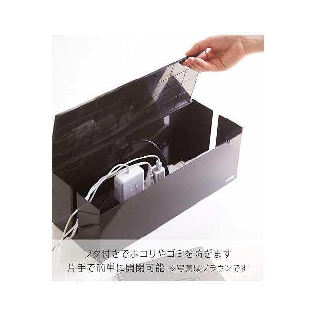 山崎実業(Yamazaki) ケーブルボックス ウェブ L ホワイト 約W40×D15.5×H14.5cm 電源タップ ケーブル 収納 2707