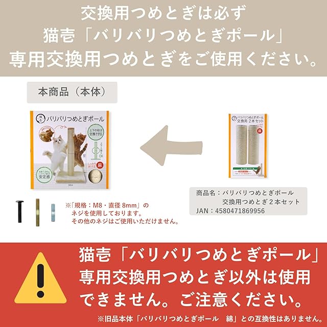 猫壱 バリバリつめとぎポール 麻 ベージュ レギュラー