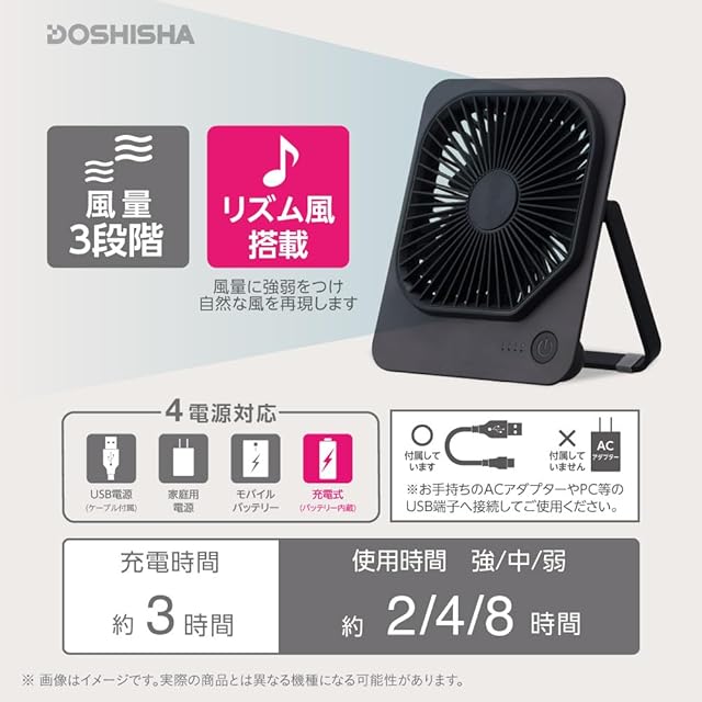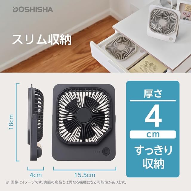 商品名:ドウシシャ 卓上扇風機 スリムコンパクトファン Move 風量3段階 4電源(USB 家庭用 モバイル 乾電池) 厚さ2.5㎝ グレー FSA-1012B GY