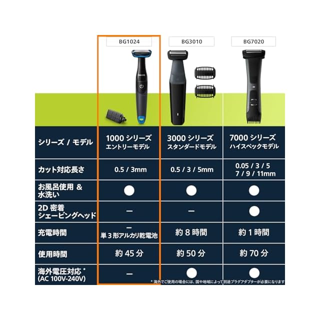 フィリップス ボディ トリマー 1000シリーズ ボディーシェーバー グルーマー (お風呂使用可(カラダ用)乾電池式) BG1024/17 ブラック/ブルー