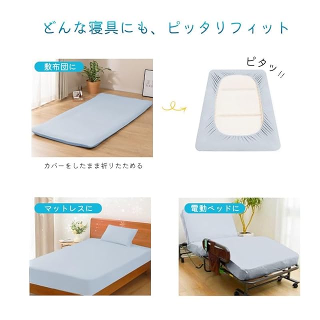 【全面に保護・ズレ防止汚れ防止・収納楽】ボックスシーツの伸縮性よいし、全周ゴム付き、伸シワになりにくく、ズレにくく、シーツが浮くことなく、見た目もすっきり。マットレスや敷きふとんの汚れ防止にも役立ちます。敷き布団にもソファベッドにも引っ掛けたまま折り畳むこともできて収納楽です。