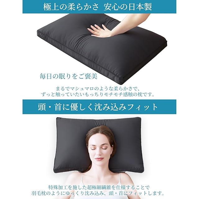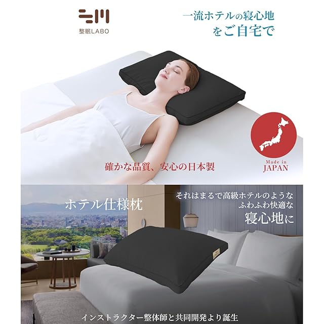 【整眠ラボ日本製高級ホテル仕様】羽毛のように柔らかな感触で包み込むフィット感、ご自宅でホテルのような贅沢睡眠体験!心地よさを追求したホテルスタイルのまくらが上質な眠りを演出します。