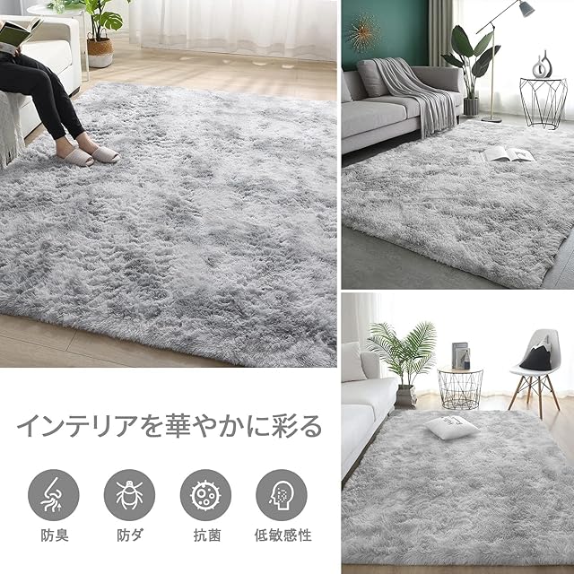 商品名:ラグマット カーペット 120x160cm おしゃれな北欧風シャギーラグ 全厚約5cm 洗えるラグ 滑り止め付き 毛足約4cm ふわっとした手触り 防音絨毯 オールシーズン快適に使用 長方形 ROCYJULIN(ライトグレー 約1.5畳 )