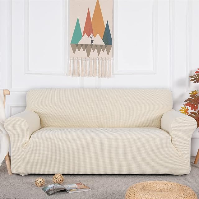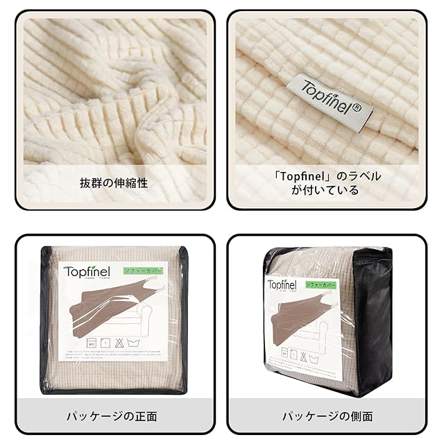 商品名:Topfinel ソファーカバー 3人掛け 肘付き 無地 北欧風 ストレッチ フィットタイプ 伸縮素材伸び良く 滑り止め 柔らかい 犬 猫 傷 防止 超便利 四季適用(ベージュ)