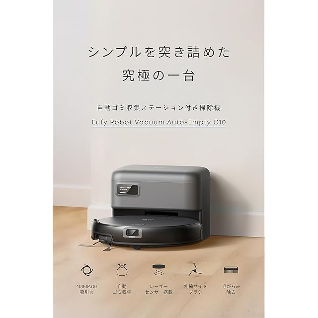 商品名:Anker Eufy (ユーフィ) Robot Vacuum Auto-Empty C10 (ロボット掃除機) 【自動ゴミ収集ステーション/伸縮サイドブラシ/毛絡み除去システム/レーザーマッピング/アプリ操作/落下防止/薄型 / 最大24ヶ月】