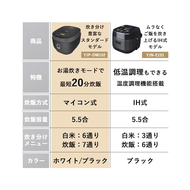 商品名:[山善] 炊飯器 一人暮らし 5.5合 マイコン式 二人暮らし 玄米 雑穀米 炊き分け13種 最短20分炊飯 「メニューに合わせた白米炊き分け機能付き」 クリーンモード搭載 予約 保温 ブラック YJP-DM102(B)
