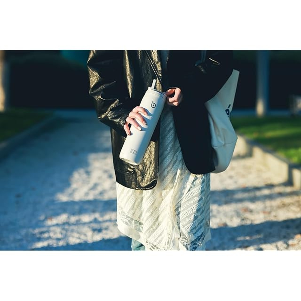 BOTTLE BOTTLE 水筒 1リットル 大容量 1000ml ストロー付き 直飲み 保温保冷 真空断熱 子供 大人 持ち手付き おしゃれ 1L ボトル ステンレス 魔法瓶 二重構造 女の子 男の子 持ち運び スポーツ アウトドア ライトグレー