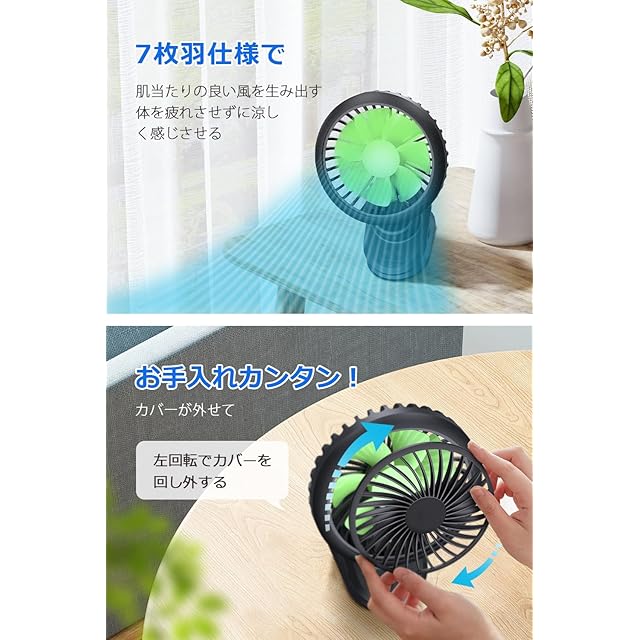 【静音設計で夜間使用も安心&お手入れ簡単】運転音はたったの15dBと非常に静かで、就寝中や仕事中でも音が気にならない静音仕様。7枚の羽根で柔らかな風を生み出し、細かいメッシュの安全ガード付きで、お子様がいる家庭でも安心。カバーは簡単に取り外せてお手入れも楽々。清潔を保ちながら長く使える、静音性と安全性に優れた小型扇風機です。