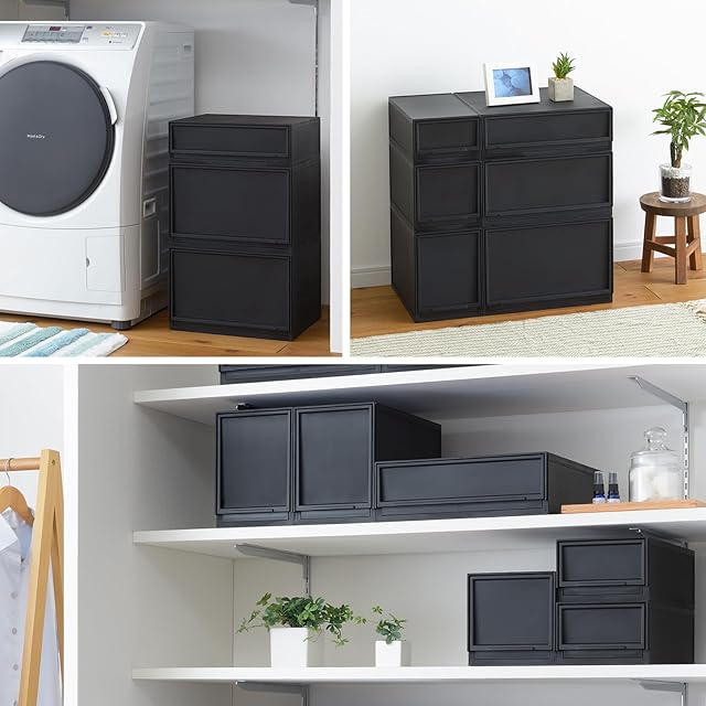 商品名:サンカ モジュールケース 組み合わせ自由自在 引き出し収納ケース ワイドS ブラック ライフスタイルに合わせて組み合わせができる引き出し収納 スルっと引き出せて スキッと閉まる引き出し ズレを防ぐラバーストッパー ロック機構で重ねても安定 日本製 収納ボックス 衣装ケース 小物収納 黒 (37.6×35.5×12.6cm) D2SC-SWBK