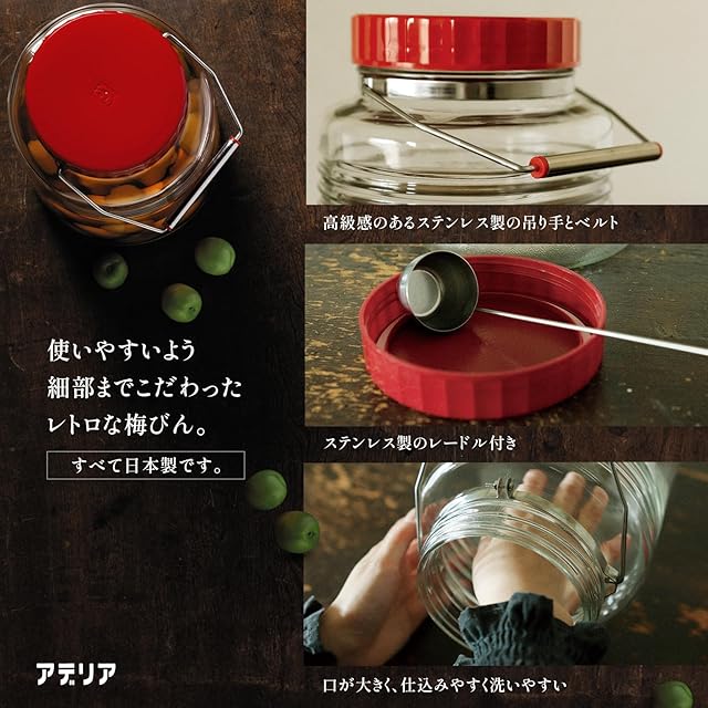 アデリア(ADERIA) 復刻 梅びん 4L日本製 個箱入 保存容器 梅酒瓶 梅瓶 昭和 レトロ 保存瓶 レトロ レードル付 米びつ 果実酒瓶 ガラス キャニスター 密閉 容器 調味料入 瓶 密閉 コーヒー 豆 721