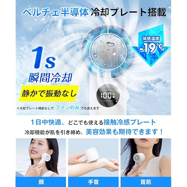商品名:ハンディファン 冷却プレート 手持ち扇風機 【2025革新モデル・-19℃瞬間冷感】 冷却ファン 強力 風量 6800mAh 大容量 静音 3in1 無段階風量調整 29H長時間稼働 Type-C 急速充電 LEDディスプレイ ペルチェ 携帯扇風機 ハンディせんぷうき カラビナ 掛け 首掛け/卓上/手持ち 通勤/通学/アウトドア/屋外/キャンプ 暑さ対策 熱中症対策
