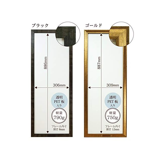 材質:フレーム 樹脂、裏板 KTボード(厚み5mm)、面材 PET0.5mm、台紙 コートボール紙(厚み0.5mm)