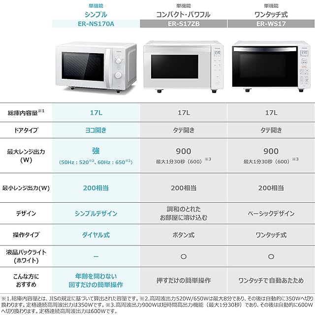 TOSHIBA(東芝) 電子レンジ 17L フラットテーブル 単機能 全国対応 ダイヤル式 レンジ あたため 庫内灯 オレンジLEDタイマー 簡単操作 一人暮らし/家庭向/お年寄り 新生活 新社会人 入学・入園 ER-NS170A(W) ヘルツフリー