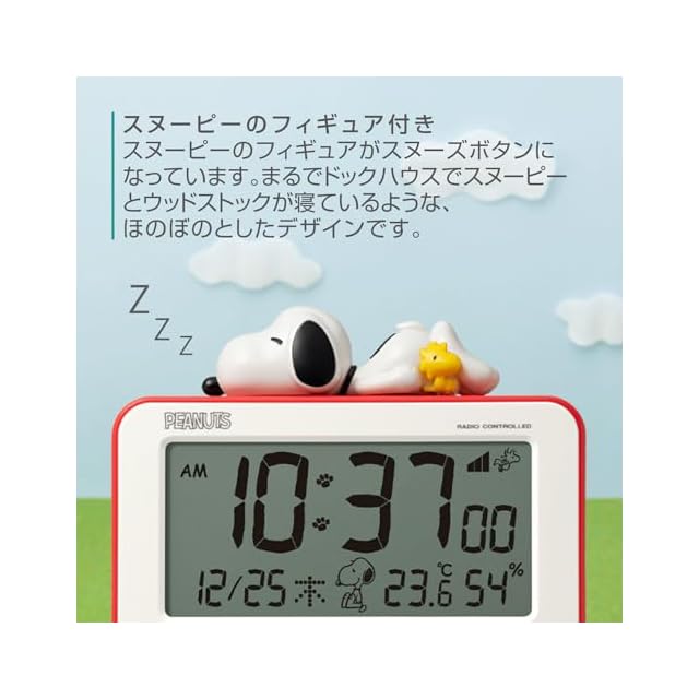 商品名:リズム(RHYTHM) スヌーピー 目覚まし時計 デジタル 電波時計 立体 フィギュア 電子音 アラーム (スヌーズ 付) 温度計 湿度計 カレンダー ベージュ 10.2×12×5.4cm 8RZ235MS38