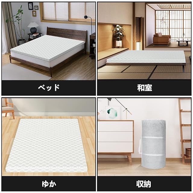 【収納便利・取り外せる外カバー】マットレスは収納袋付きで、マットレスの短い辺を真ん中から二つに折ってから丸めた後収納袋に収納できます。省スペースで場所を取りません。ファスナー付きの外カバーは簡単に取り外して洗えます。外カバーの裏側が滑り止め付きで、ふと気がつくと、マットレスがずれていることがありません。
