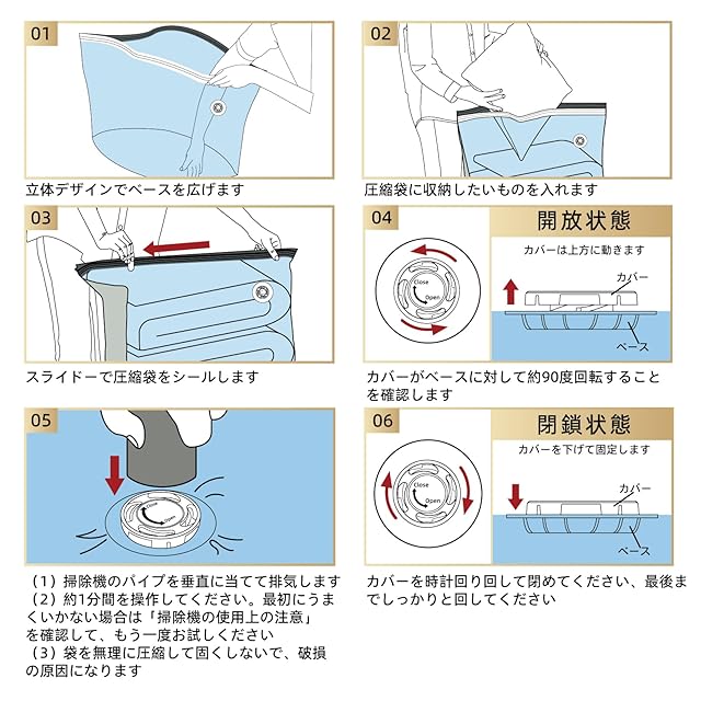 荷物スペースを最大化: 立体圧縮袋は、荷物真空バッグ間の隙間の無駄なスペースを減らすように設計されています。荷物のスペースを最大限に活用できるだけでなく、その他の旅行の必需品を収納できる整理されたスペースも確保します。機内持ち込み手荷物や旅行用の圧縮バッグとして最適です。真空バッグにより、ラゲッジスペースが最大 3 倍圧縮されます。頻繁に使用する場合でも安心してお使いいただけます
